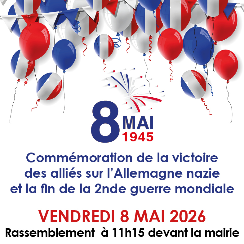 81ème commémoration de la victoire des alliés sur l’Allemagne nazie et la fin de la seconde guerre mondiale Mercredi 8 mai 2026 Rassemblement à 11 h 15 sur le parvis de la…