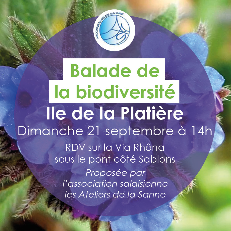Dans le cadre des Journées du patrimoine, les ateliers de la Sanne propose une balade animée autour de la biodiversité. Elle commencera à 14h au départ du parking le long de la viarhôna au pied du pont côté Sablons et fera 5km. Il y aura un quizz et un goûter sera servi à la fin.