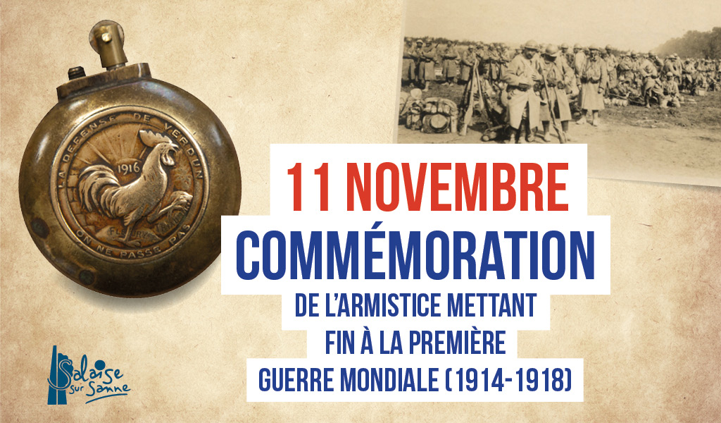 Le conseil municipal de Salaise sur Sanne vous invite à participer à la Commémoration de l’Armistice mettant fin à la première guerre mondiale 1914 - 1918 Mardi 11 novembre 2025 Rassemblement à 11h15 devant la mairie Départ du défilé à 11h30 précises pour se rendre au monument aux morts où une gerbe sera déposée.