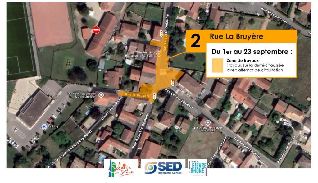 Des travaux d’aménagement vont se dérouler de juillet à septembre 2025 pour pérenniser les aménagements doux de la rue Edouard Aubert et aménager le carrefour entre les rues Aubert, Delaune et La Bruyère à Salaise sur Sanne.