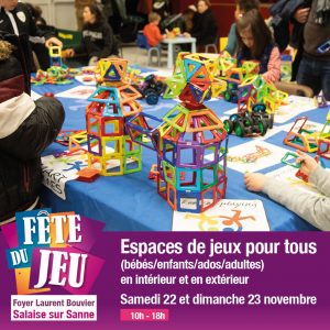 Samedi 22 et dimanche 23 novembre de 10 à 18 h, la ludothèque Espace Jeu vous propose un week-end de jeu gratuit pour toute la famille au Foyer Laurent Bouvier !
