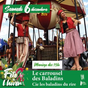 > La compagnie Les Baladins du rire avec Le carrousel des baladins, un véritable carrousel mécanique à l’ancienne.
