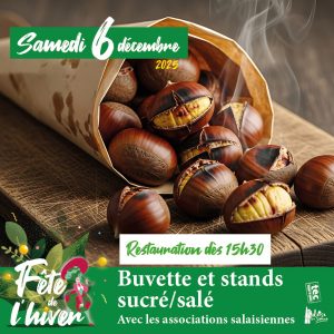 16h30 – Ouverture des stands Châtaignes, Huitres et moules, Hot dog et paninis