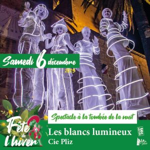 > Les blancs lumineux – Cie Pliz : D’une élégance immaculée, ces échassiers évoluent gracieusement et vous font vivre des moments précieux et féériques. Ils se pavanent et s’exposent devant les regards curieux et émerveillés. Invitez-les, ils vous emmèneront dans un autre monde…